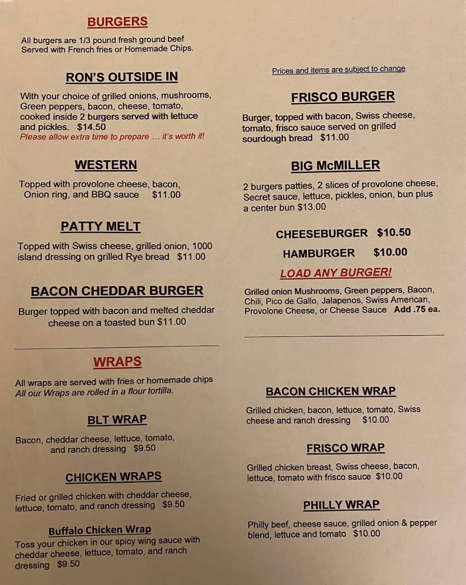 The menu at Miller House Pub & Cafe offers a delightful range of dishes that cater to various tastes, all served in a cozy, welcoming atmosphere. Among its standout items, the Beer stands out as a popular choice, offering refreshing options perfect for pairing with any meal. The Fish Tacos are another must-try, bursting with flavor and providing a satisfying combination of crispy fish and fresh toppings. Whether you're craving a hearty meal or a light bite, the menu has something to suit every preference, from comforting pub classics to lighter, flavorful options. The friendly service and relaxed vibe make it an ideal spot to enjoy a great meal with friends or family.